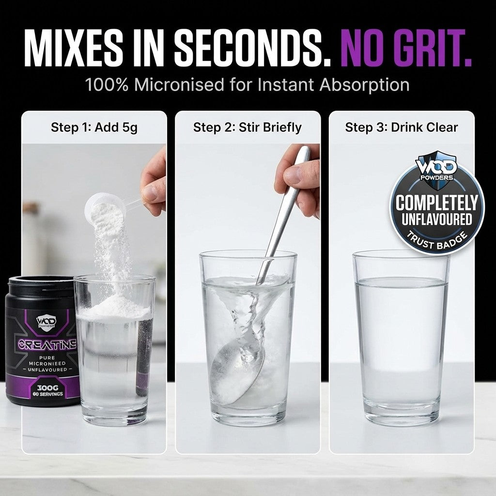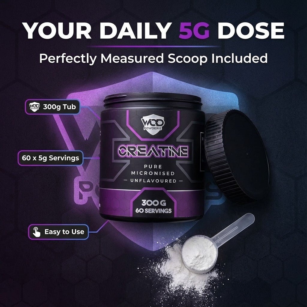 Servings size: 5g of powder (1 scoop) mixed with at least 200ml of water and consumed immediately pre-workout. Make sure to drink plenty of fluids. We recommend drinking at least 2.5 – 3.5 litres of water a day when taking creatine on a regular basis.