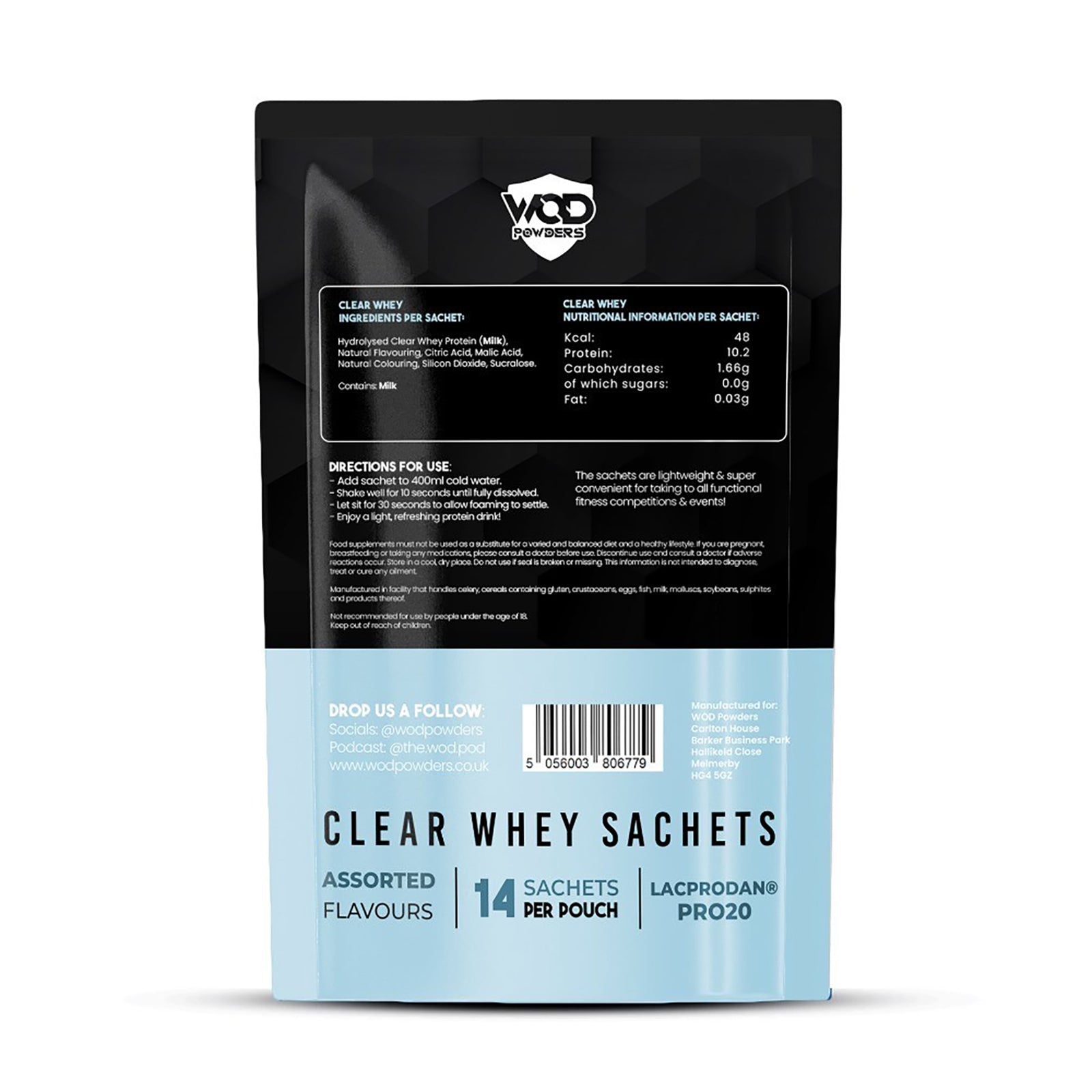 WOD Powders Clear Whey Sachet Pouch – Assorted Flavours